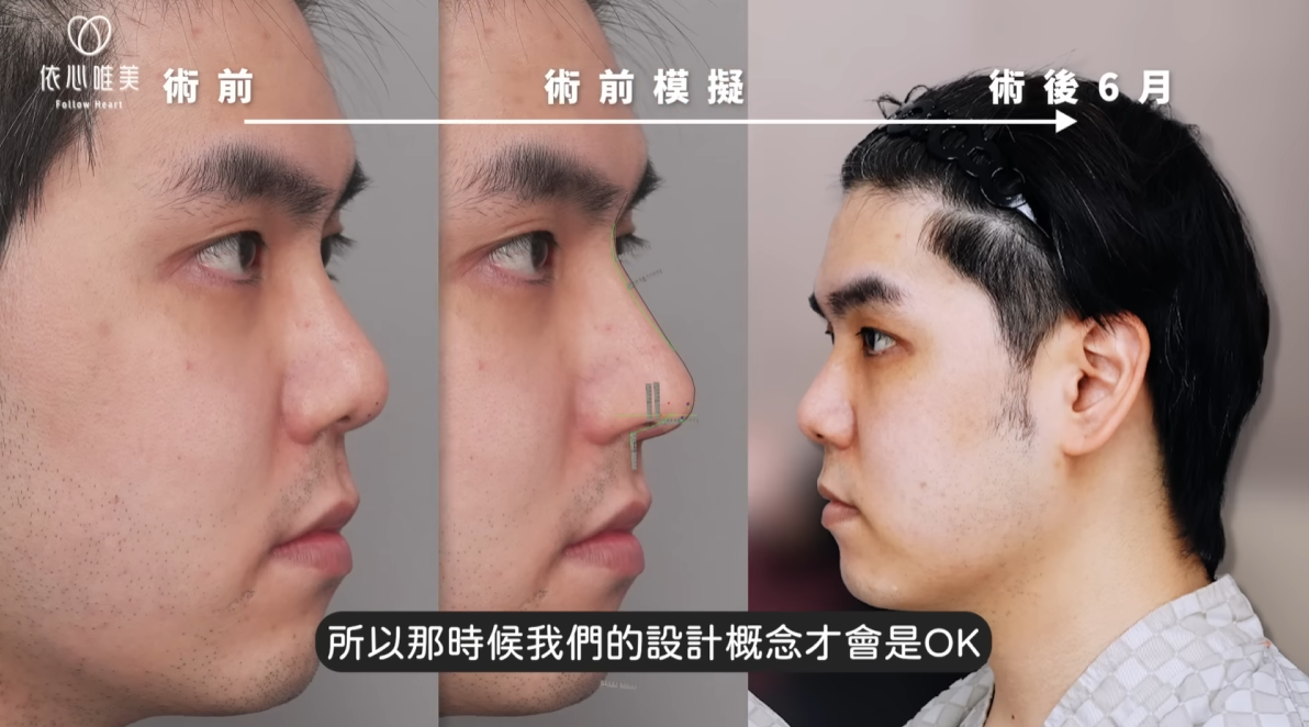 在鼻部規劃上,謝東穎醫師將志祺的鼻子適度向下延伸,同時微調鼻頭大小,讓線條更加俐落。