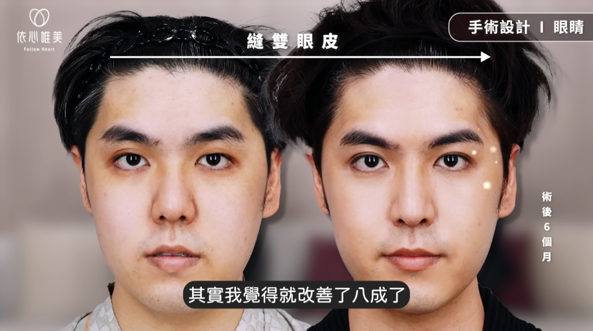 除了鼻型之外,志祺的眼部條件也是諮詢時的重點評估項目。他原本有明顯大小眼問題,大部分來自眼皮結構差異,謝醫師選擇以雙眼皮懸吊調整為主,改善對稱度與精神感。