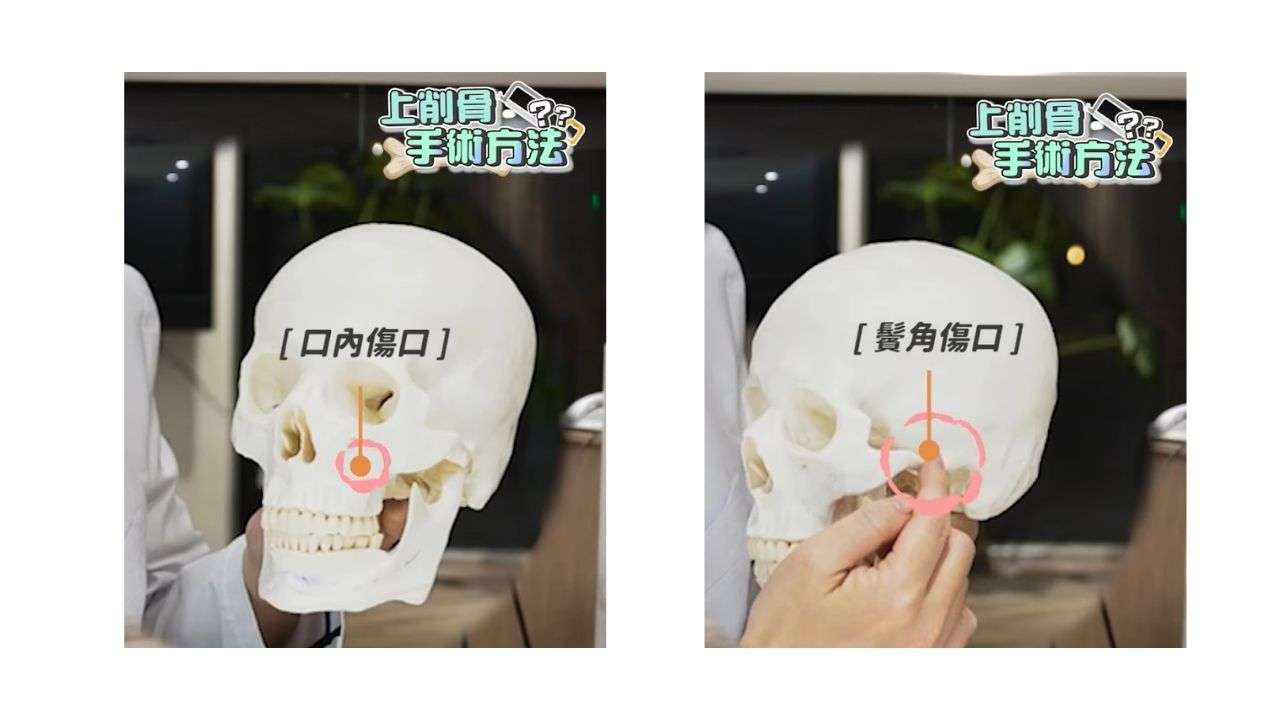 手術基本上是要睡著做(a.k.a 全身麻醉),我們會在口內與鬢角處,各有兩個傷口。
