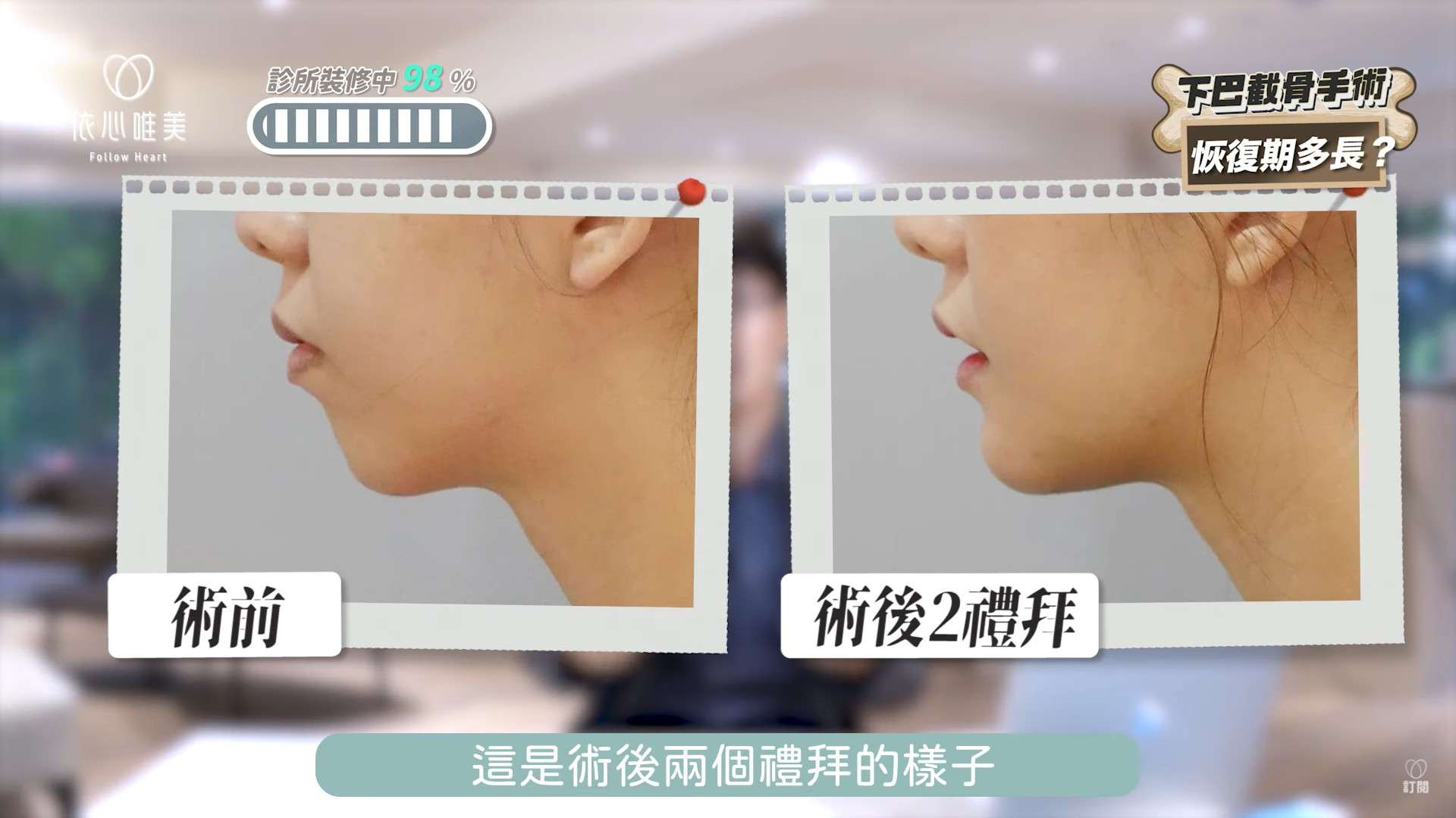 不過如果是單純要把下巴變小,不需要處理後縮問題,因為組織比較鬆軟,所以腫脹的時間會稍微久一點,有時會到差不多四個禮拜,才是可以見人的程度。