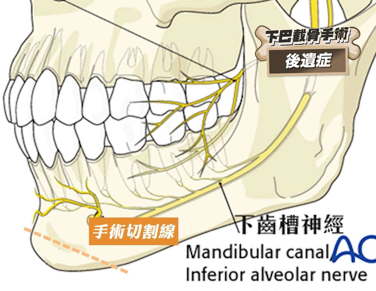 而下齒槽神經是個感覺神經,如果受傷,顏面表情不會有什麼問題,但會造成下巴或嘴唇永久沒有感覺。而這樣較為嚴重的後遺症發生的機會並不高,大概低於1%。
