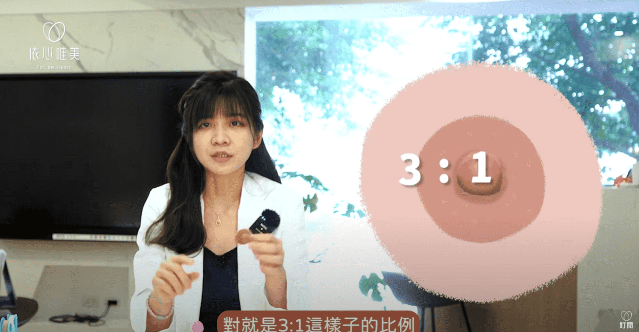 1.乳暈和乳頭比例為3:1。