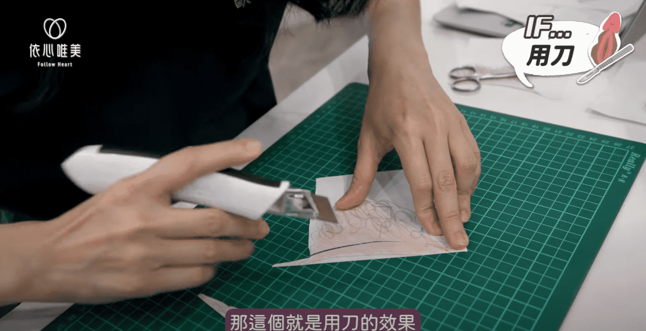 手術刀的使用方式與剪刀類似,同樣能切割出平滑的邊緣。不論是剪刀還是手術刀,切割後的效果都非常一致,且邊緣細緻。
