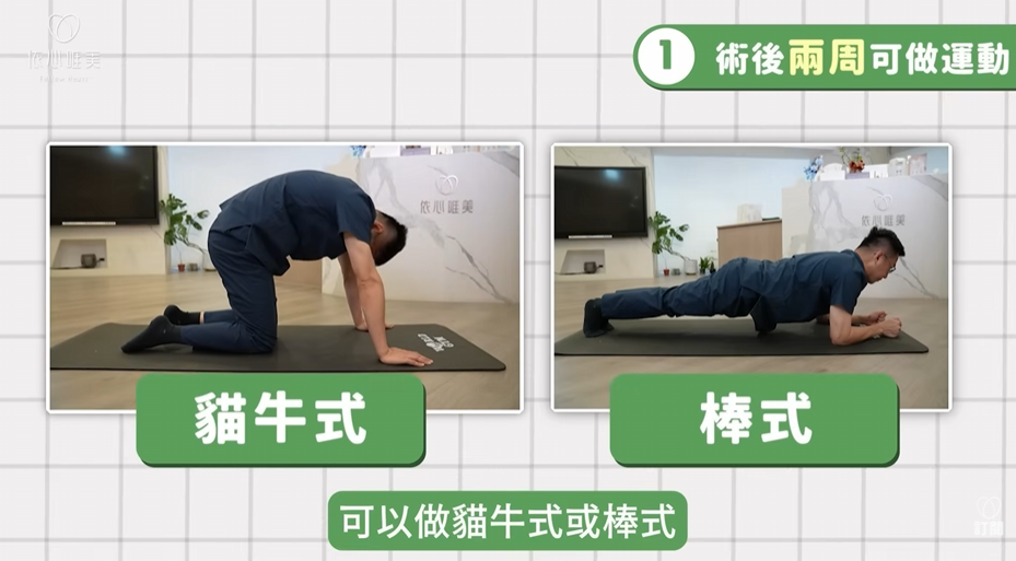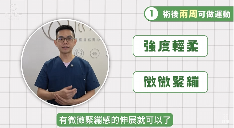 術後前兩週,不建議運動!即使覺得不太痛、不太腫,也不要輕舉妄動,身體仍在積極修復,過早運動可能影響消腫與恢復。