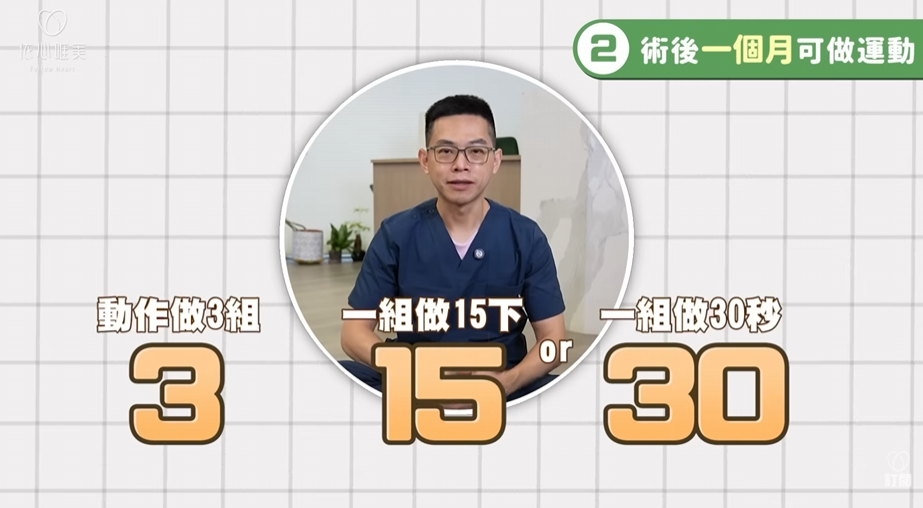 五、術後一個月:進入穩定期,可開始正式訓練(3、15、30 口訣)