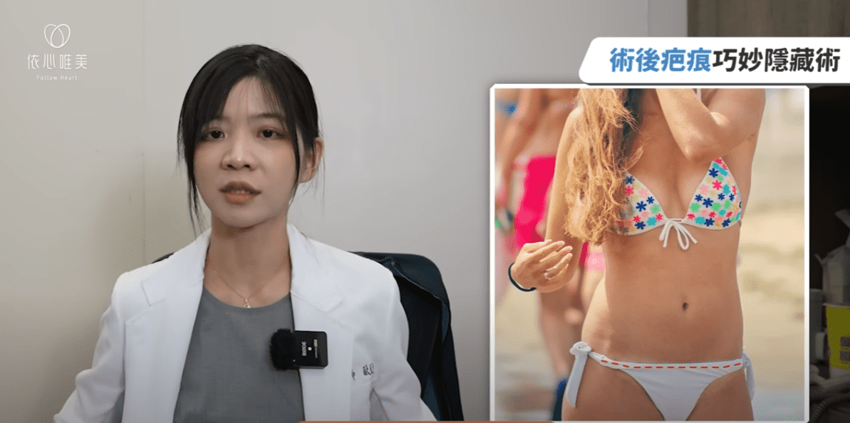 腹部拉皮的疤痕通常位於下腹(剖腹產疤痕位置),長約 30–40 公分。