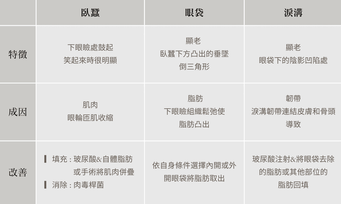 > 填充臥蠶:施打玻尿酸、自體脂肪填補或侵入性手術