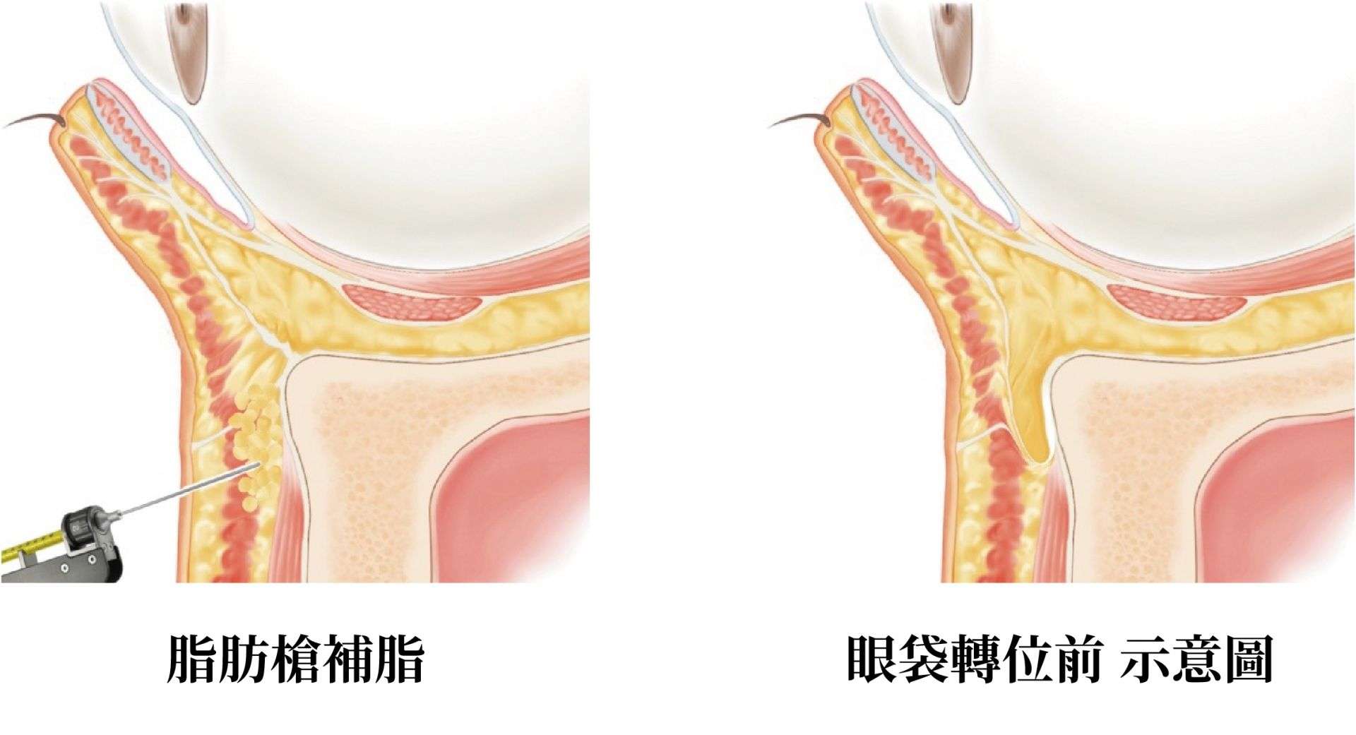 因為本⾝眼袋脂肪的量⾜夠,可填補淚溝造成的凹陷。