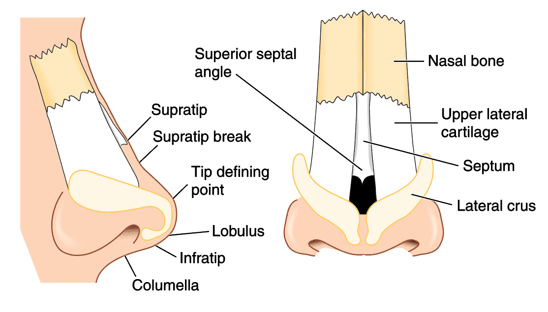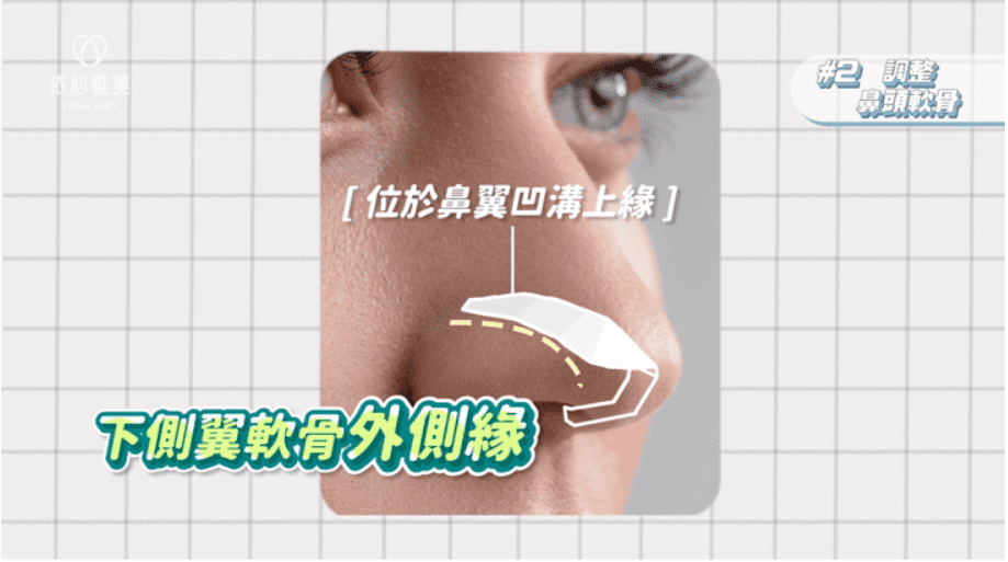 其實鼻頭的形狀,跟鼻頭軟骨的角度有非常大的關係。鼻頭軟骨,學名為下側翼軟骨,在鼻子的位置如下