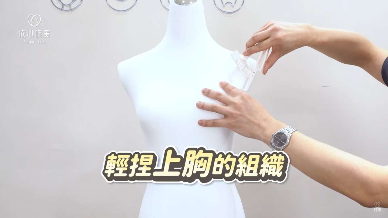 如果有些人較瘦,脂肪夾起來只有1公分,就會建議放在肌肉下層,甚至所謂的半筋半肉,下方在筋膜層下面,上方還有部分的胸大肌幫忙覆蓋,讓上胸更加平順。