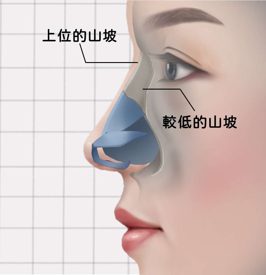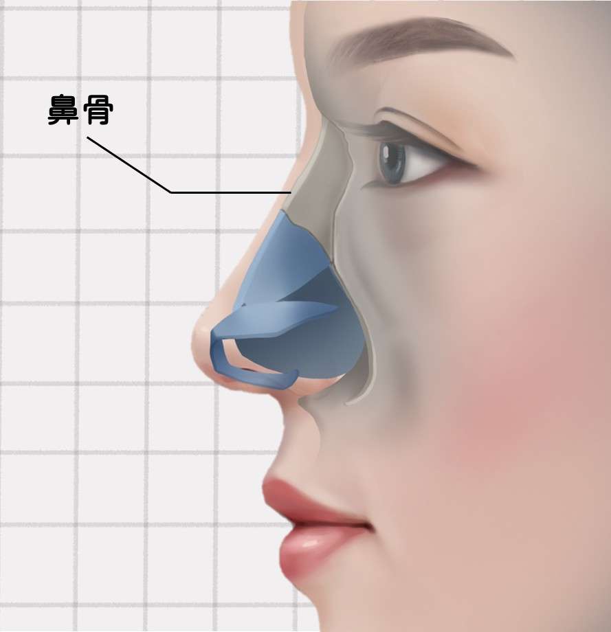 鼻背的骨頭就是鼻骨,像很銳利、很堅挺的山。但如果鼻骨像丘陵一樣,並不銳利,反而是呈現平緩的線條,從側面看起來有高度卻線條平緩,所以顯現不出鼻子的立體度。而試著把鼻背個骨頭變窄,變得更立體的方法 ,就是敲鼻骨。